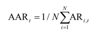 Average abnormal returns (AAR) are calculated using Equation (4), where we compute the arithmetic average of Ars for all the indices on each event day. N represents the number of indices.
