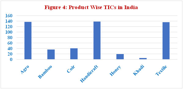 The product wise TICs are given in figure 4 where Agro, Handicrafts and Textiles products have more numbers in India.